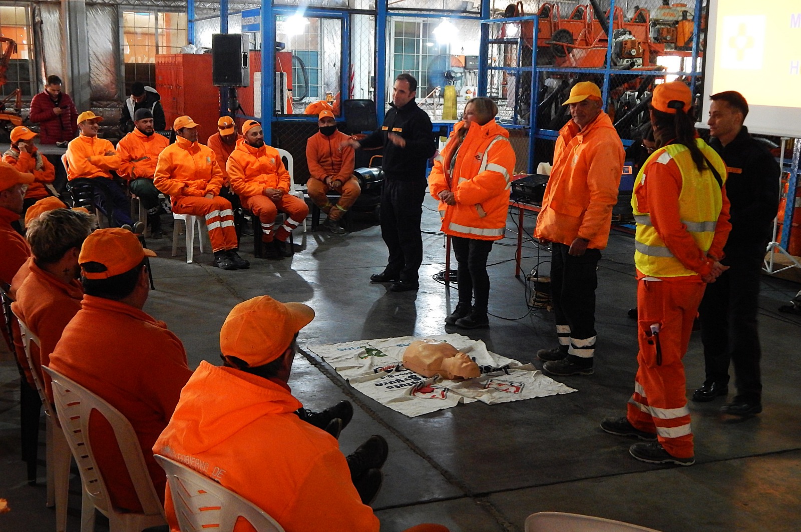 La capacitación se realizó en el taller del organismo en Juana Koslay y estuvo dirigida por integrantes de bomberos voluntarios de la localidad de El Volcán, quienes desarrollaron conceptos teóricos y actividades prácticas. Para la tarea, por ejemplo, emplearon maniquíes en experiencias de RCP.