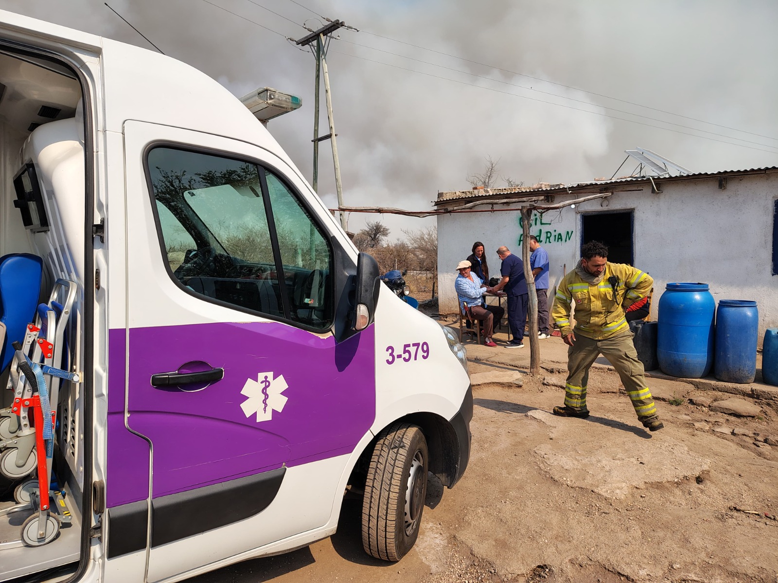Para llevar adelante estas tareas, se cuenta con la colaboración de dos móviles del Hospital de Tilisarao —una ambulancia y una unidad de Triage—, una unidad de Triage del Hospital de Naschel y un móvil del Hospital de La Toma, a lo que se suman las unidades disponibles del Hospital de San Martín, que han trabajado sin descanso para llegar a cada rincón afectado por el fuego.