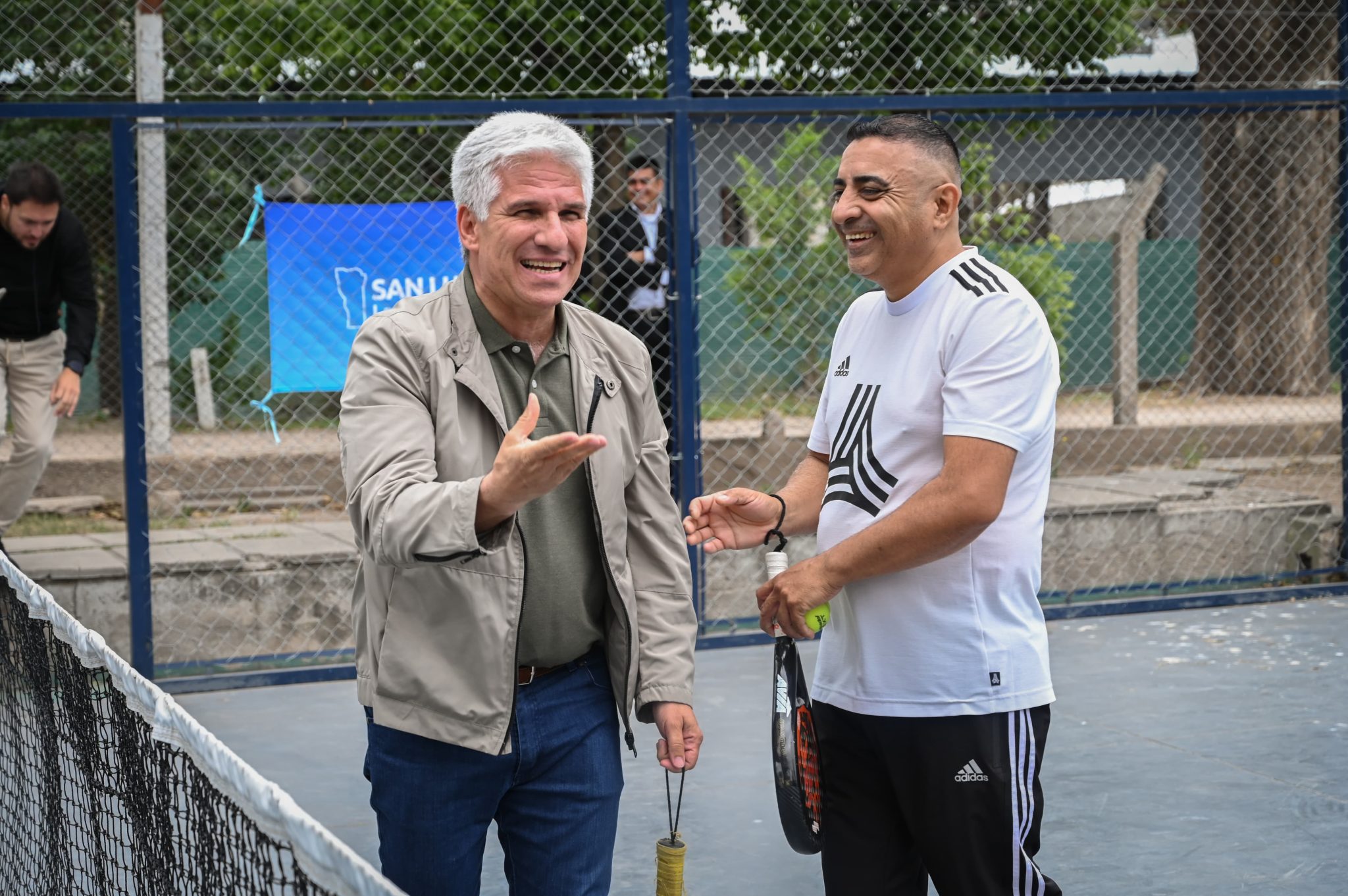 Aunque la jornada se extiende durante todo el domingo, el Gobernador compartió con todos. Incluso, jugó un partido de pádel con un equipo de adultos mayores que forman parte del Ave Fénix y hacen ese deporte por diversión.