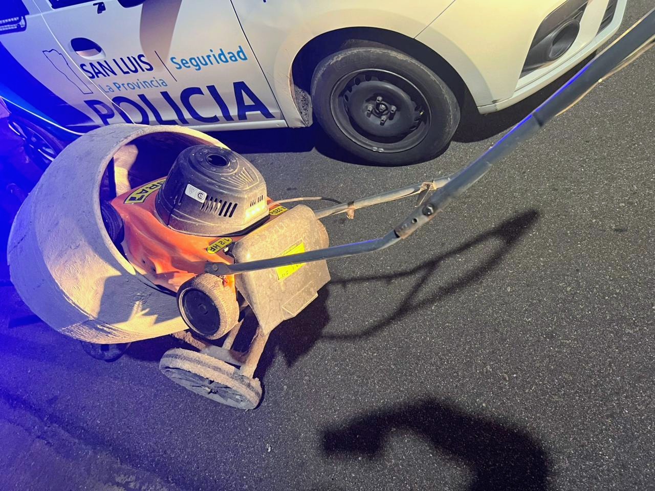 Con los datos aportados, los policías se dirigieron hacia ese sector e interceptaron al sospechoso en calle 2 de Abril, frente a la manzana “D” del barrio Parque de las Naciones. El individuo transportaba una máquina hormigonera, una cortadora de césped y un alargue, sin poder justificar la procedencia ni propiedad.